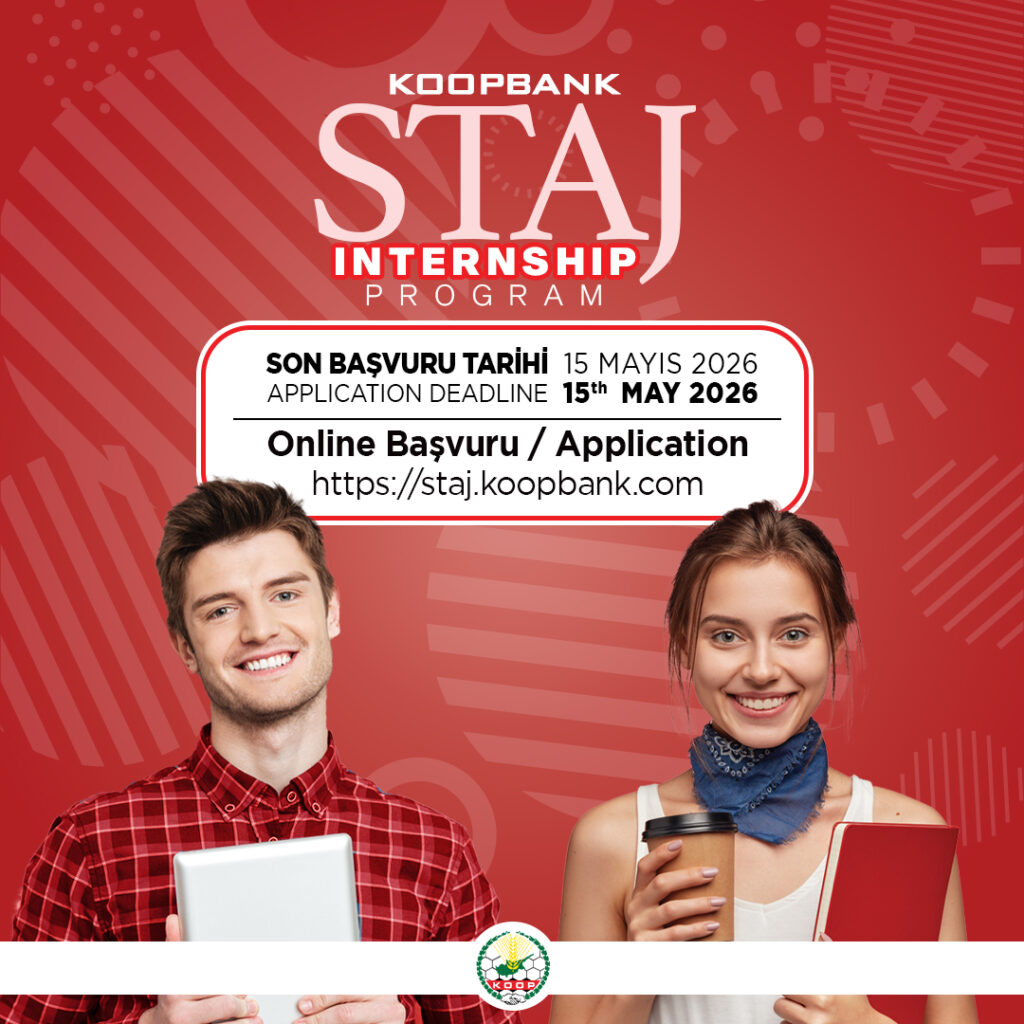 Koopbank’ın bankacılık ve bilişim alanlarında kariyer yapmak isteyen üniversite öğrencilerine sunduğu staj programı için başvurular devam ediyor. Koopbank, geçtiğimiz yıllarda olduğu gibi bu yaz döneminde de bankanın tüm şube ve bölümlerinde üniversite öğrencilerine staj yapma fırsatı sunuyor. Koopbank’tan yapılan açıklamada, üniversite öğrencilerinin bankacılık sektörünü daha yakından tanımalarına imkân sağlayacak ve aynı zamanda profesyonel iş hayatına hazırlanmalarına katkıda bulunacak staj programı için 15 Mayıs 2026 tarihine kadar başvuru kabul edildiği duyuruldu. GENÇ YAZILIMCILARA ÖZEL STAJ PROGRAMI Koopbank, bilişim alanında eğitim gören üniversite öğrencilerine yönelik “Genç Yazılımcı” programı kapsamında “Yazılım Staj Programı” imkânı da sunuyor. Koopbank’ın Lefkoşa Yenişehir’de bulunan Genel Müdürlük binasındaki teknoloji merkezinde gerçekleştirilecek olan yazılım staj programı ile öğrenciler, profesyonel dünyaya adım atma fırsatı yakalayacak. Öğrenciler, program kapsamında finansal teknolojiler ve yazılım alanlarında deneyim kazanacak; dijitalleşme, farkındalık geliştirme ve bankacılık gibi çeşitli alanlarda bilgi sahibi olma fırsatı elde edecek. BAŞVURULAR ONLINE OLARAK ALINACAK – SON TARİH 15 MAYIS 2026 Koopbank’tan yapılan açıklamada, staj programından faydalanmak isteyen üniversite öğrencilerinin başvurularını https://staj.koopbank.com adresi üzerinden online olarak gerçekleştirebileceği duyuruldu. Elden veya e-posta yoluyla yapılacak başvuruların kabul edilmeyeceği de belirtildi. Kuzey Kıbrıs bankacılık sektöründe; finansal büyüklüğü, toplumun her kesimine sunduğu hizmetler ve güçlü teknolojik altyapısıyla önde gelen bankalarından biri olan Koopbank, staj programı ile gençlere önemli bir deneyim fırsatı sunuyor. Banka, bu ayrıcalıktan yararlanmak isteyen üniversite öğrencilerini vakit kaybetmeden başvuru yapmaya davet ediyor. Program hakkında daha fazla bilgiye bankanın www.koopbank.com internet sitesi ve sosyal medya hesapları üzerinden ulaşılabileceği belirtildi.