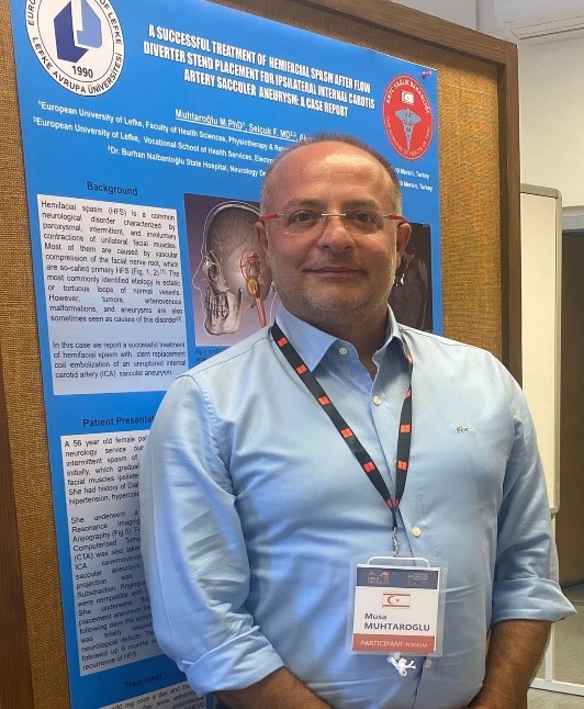 Muhtaroğlu kongrede, “Kuzey Kıbrıs’ta İzole Pons Enfarktüsünün Sıklığı ve Anatomik Paternleri” (The Incidence And Anatomic Pattern Of Isolated Pons Infarct in Northern Cyprus: A Single-Centered Retrospective Study) isimli sözlü çalışmasını ve “İpsilateral İnternal Karotid Arter Sakküler Anevrizmada Akış Yönlendirici Stent Yerleştirilmesi Sonrası Hemifasyal Spazmın Başarılı Tedavisi Olgusu (A Successful Treatment of Hemifacial Spasm After Flow Diverter Stend Placement for Ipsilateral Internal Carotis Artery Sacculer Aneurysm: A Case Report) adlı çalışmayı ise poster sunumu olarak tebliğ etti.